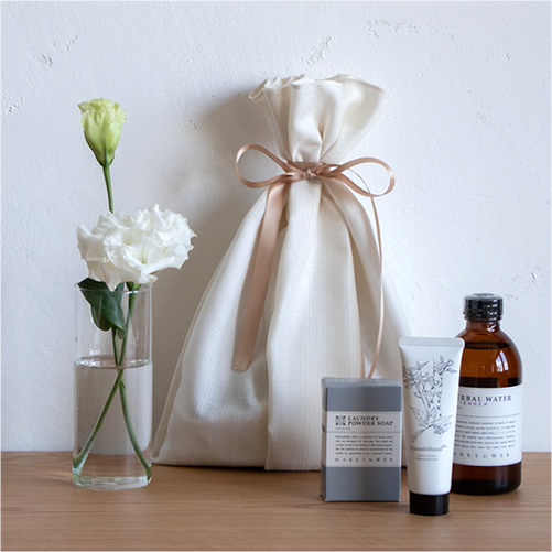 /* 【美容グッズ】 ナチュラルなコスメなら、100%オーガニックコットンのふろしきでラッピングすると雰囲気がでます。 */ |