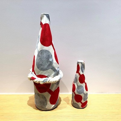 (左) 二四巾 竹久夢二 シャンタン友禅 【袋入】 つなぎだんご アカ (本体価格:2,000円)