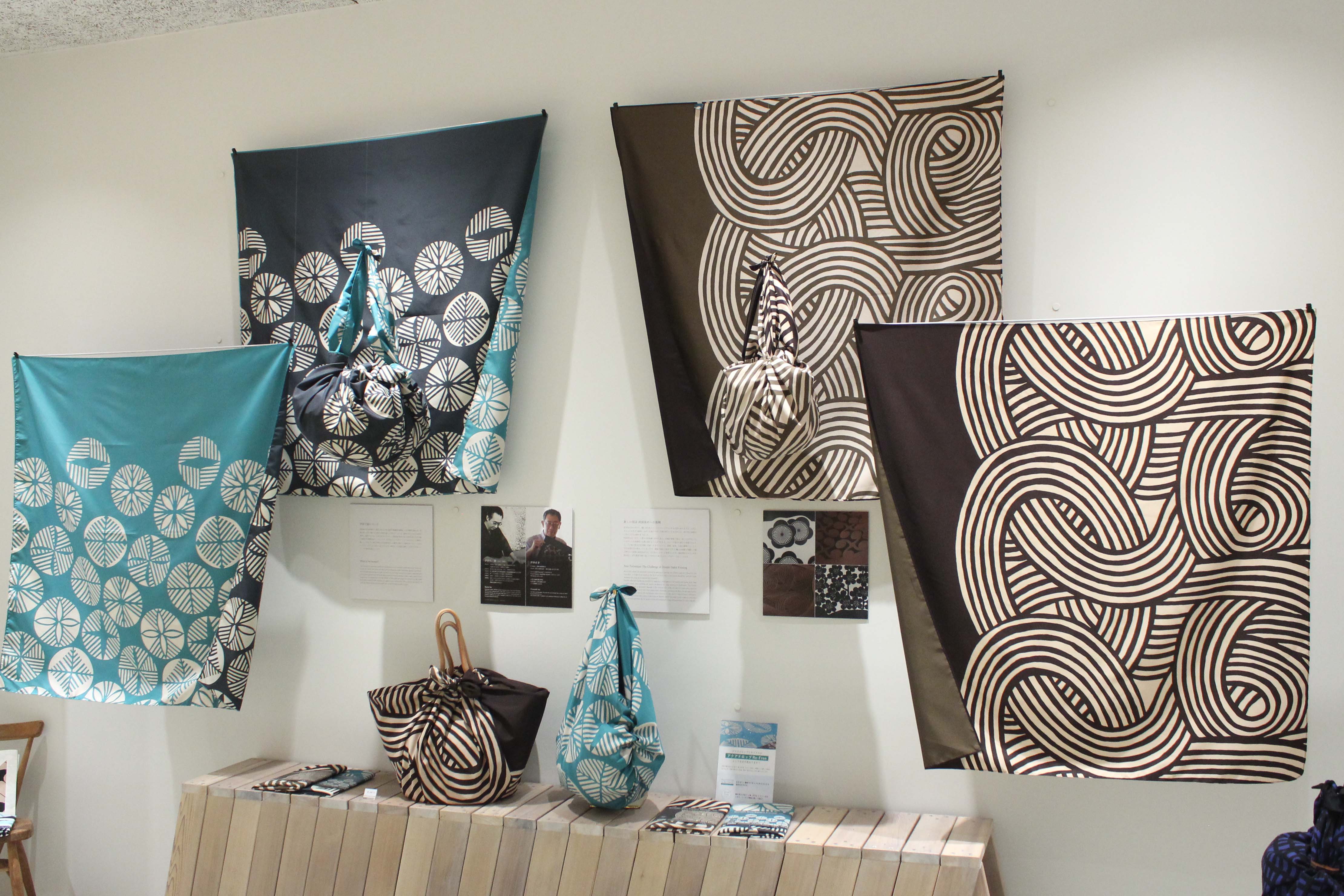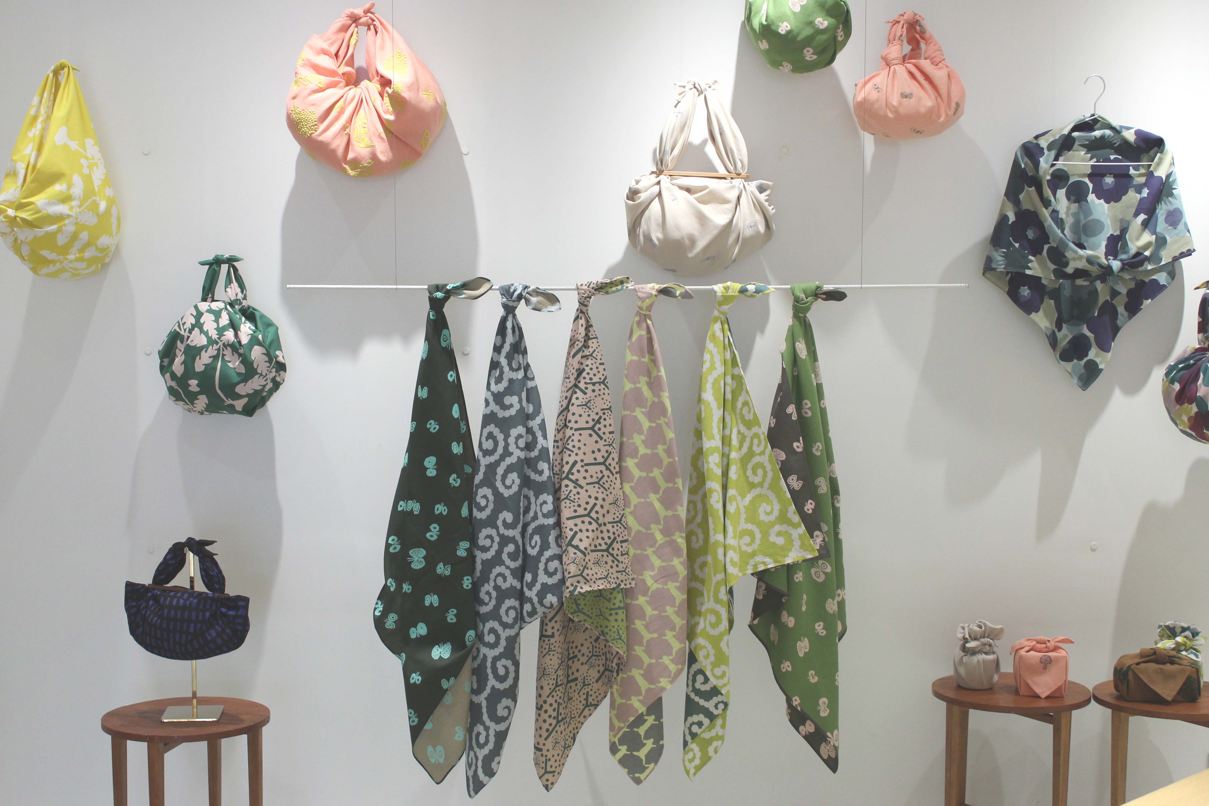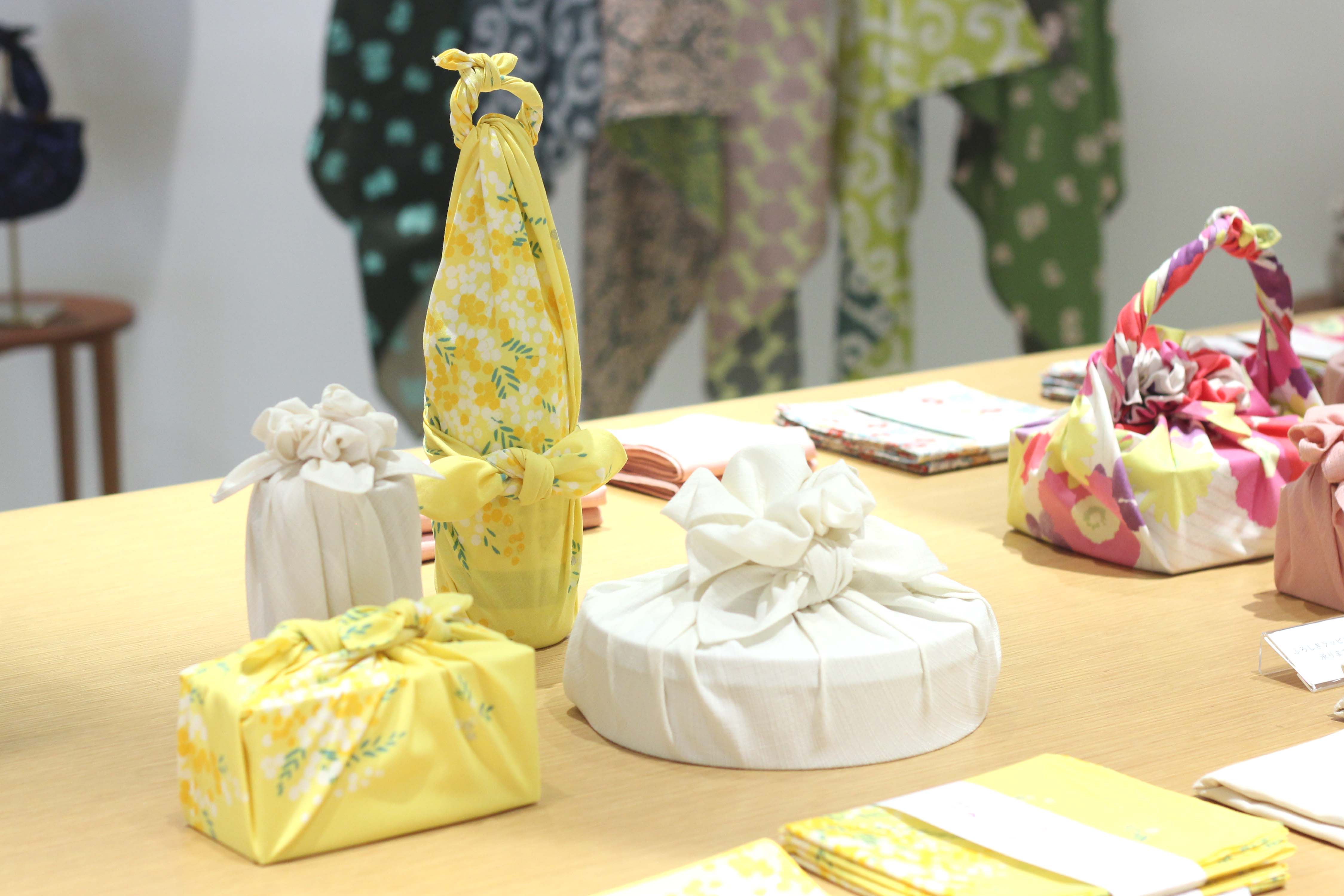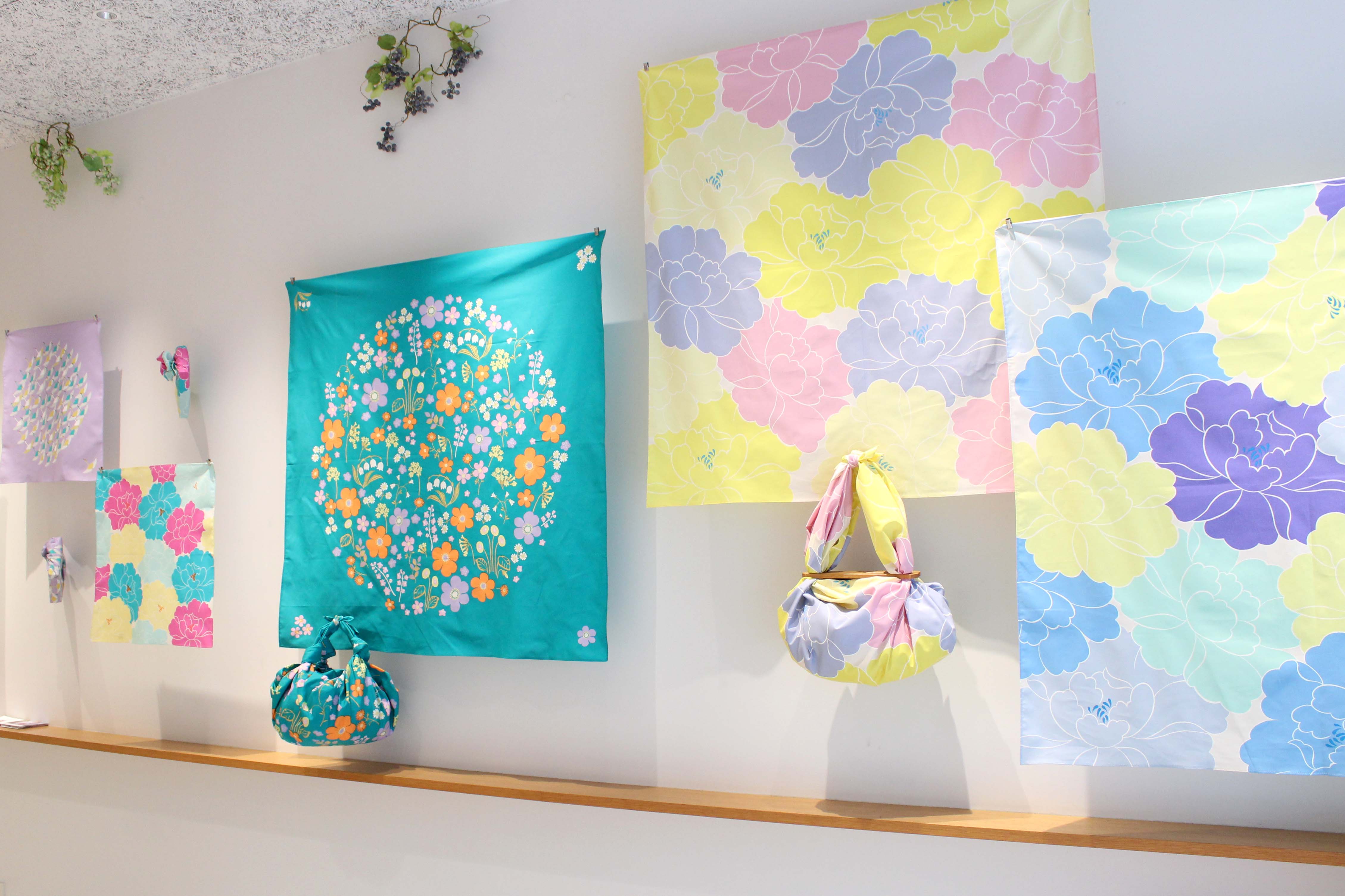 障害のある方たちのアート活動を支援している3団体「天才アート KYOTO」「Able Art Company」「アートビリティ」とむす美のコラボレーションによるふろしき「アール・ブリュット」。