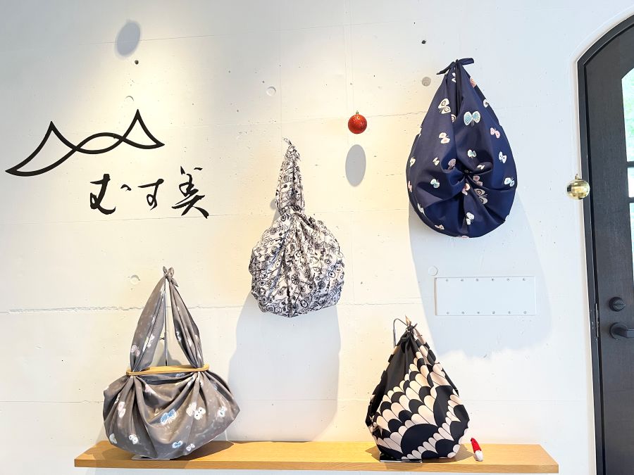 ツリーをはじめ店内ではミナペルホネンとむす美がコラボレーションした「ちょうむすびシリーズ」でバッグやギフトラッピングを展示しているので、ぜひご参考にしてみてください。