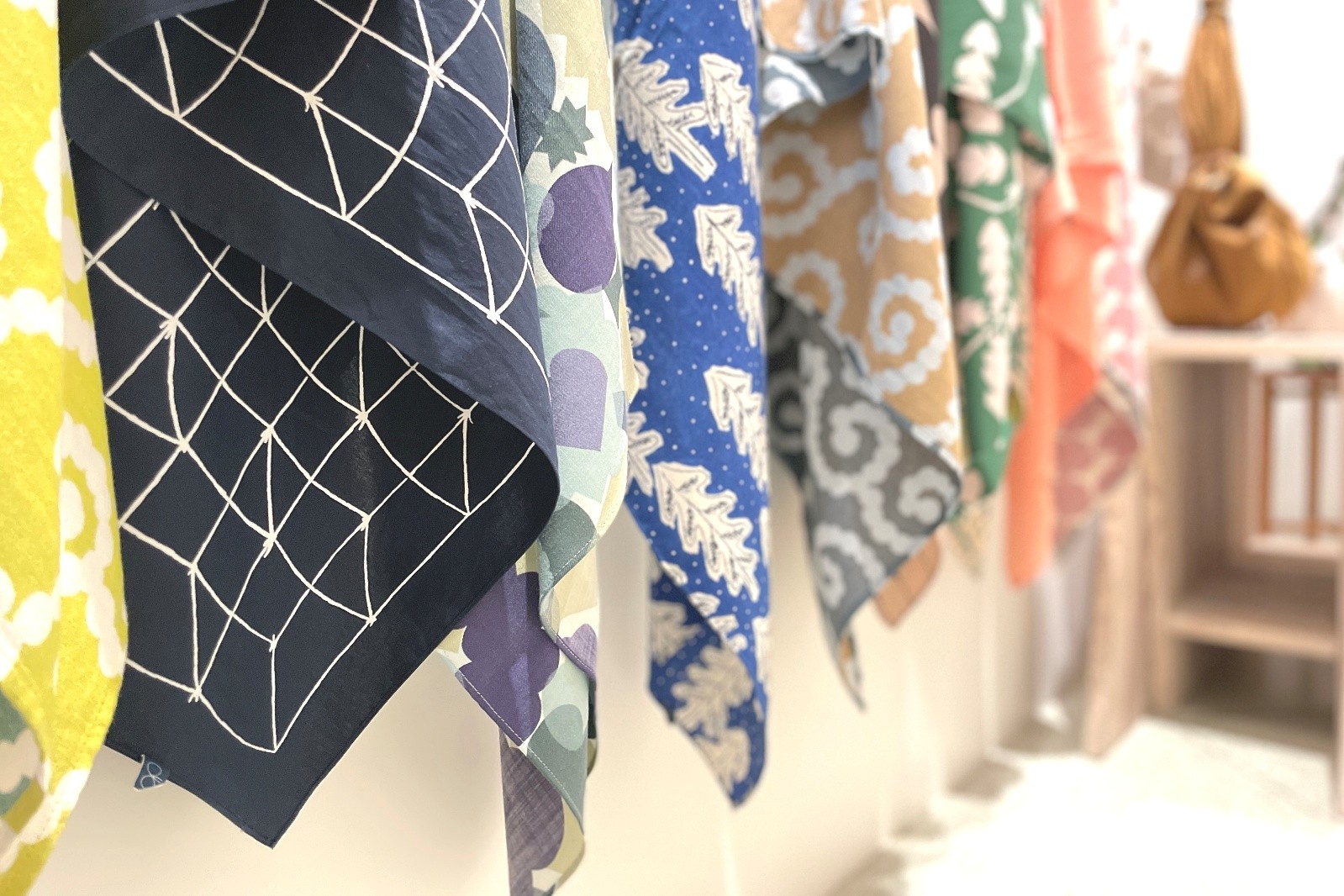 ウールや綿ガーゼ素材のふろしきは、これから肌寒くなる季節にストールとしても活用していだけます。