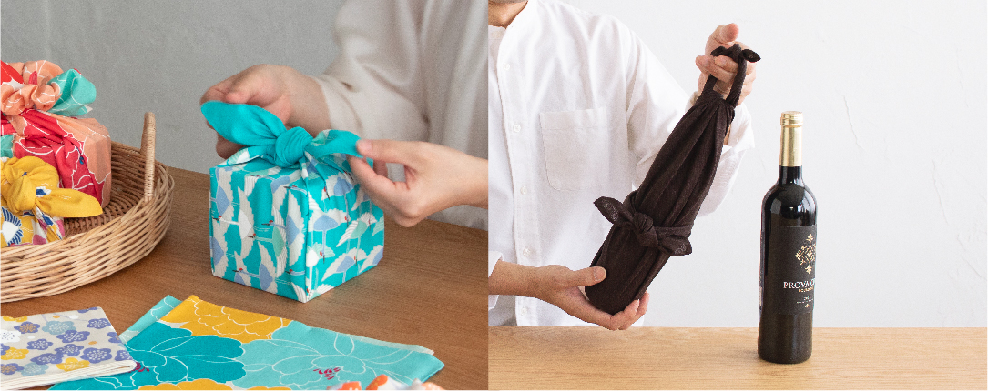 各商品をふろしきでラッピングするギフトサービスも行っております。